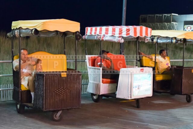 There are rickshaw available to enjoy the boardwalk in a more leisurely style. There are light shows happening sometimes near Kennedy Plaza. Steel Pier looks great with all the lights on. All the food vendors are open as well as gift shops. And there are street performers that vary night by night and more permanent establishments like Ripley’s Believe it or not and Haunted Tales.