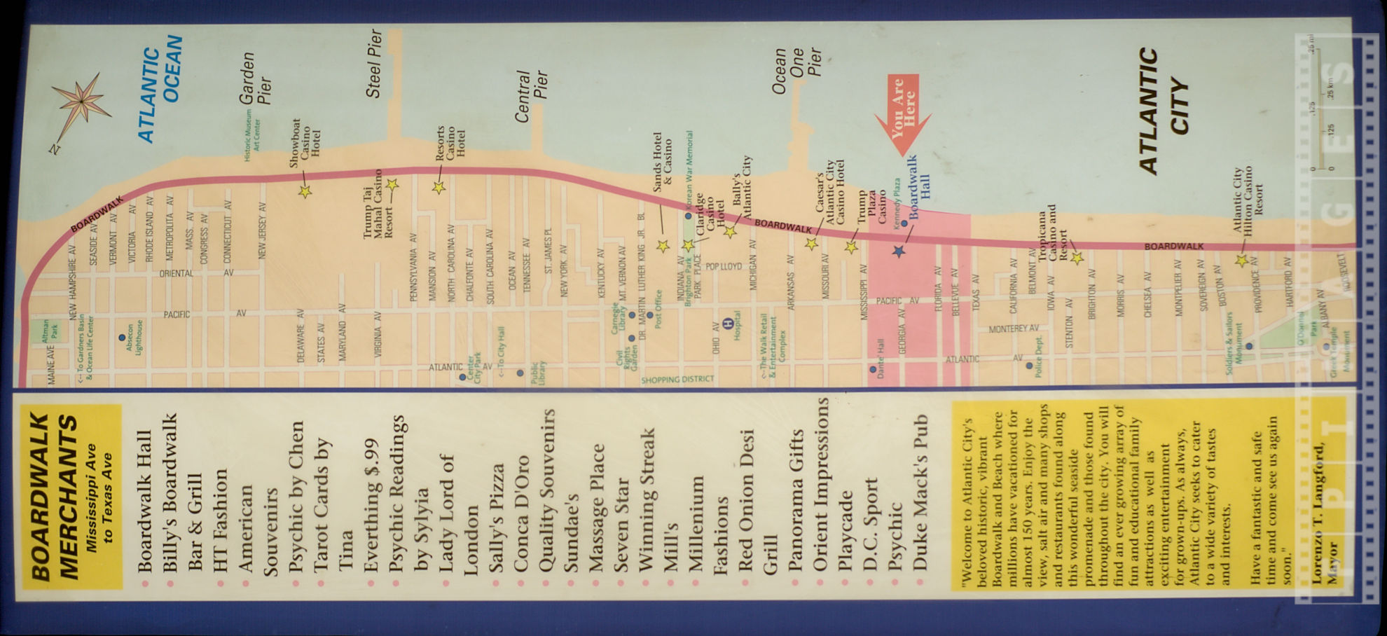 Atlantic City boardwalk is a different place in the morning, during the day and at night. Some people probably will stay in bed in the morning and it may be too hot during the day for others, some will spend most of the time on the lovely beach. Early evening and night is probably one of the best times to walk the boardwalk to enjoy the fresh air and work up appetite and finally deciding where to eat. Atlantic city boardwalk is facing south east so if you start at the northern end near the Absecon inlet and lighthouse you may catch a glimpse of a beautiful sunset in the west.