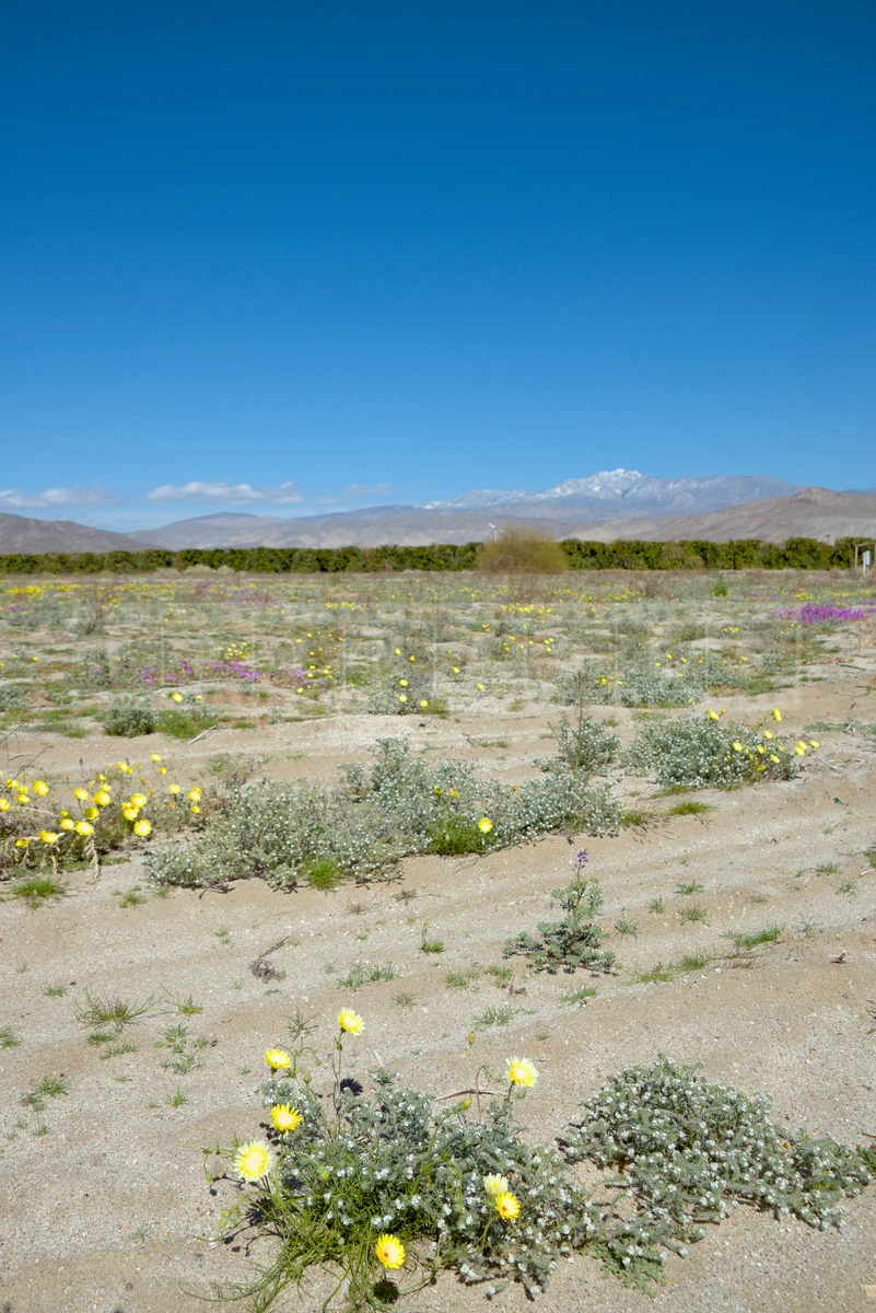 The peaks surrounding the valley are blanketed with snow during the winter. Snowmelt, rainfall and natural springs all feed Coyote Creek as it tumbles down to the desert floor. This water supports lush vegetation and allows flowers to bloom in the spring – from early March to April.