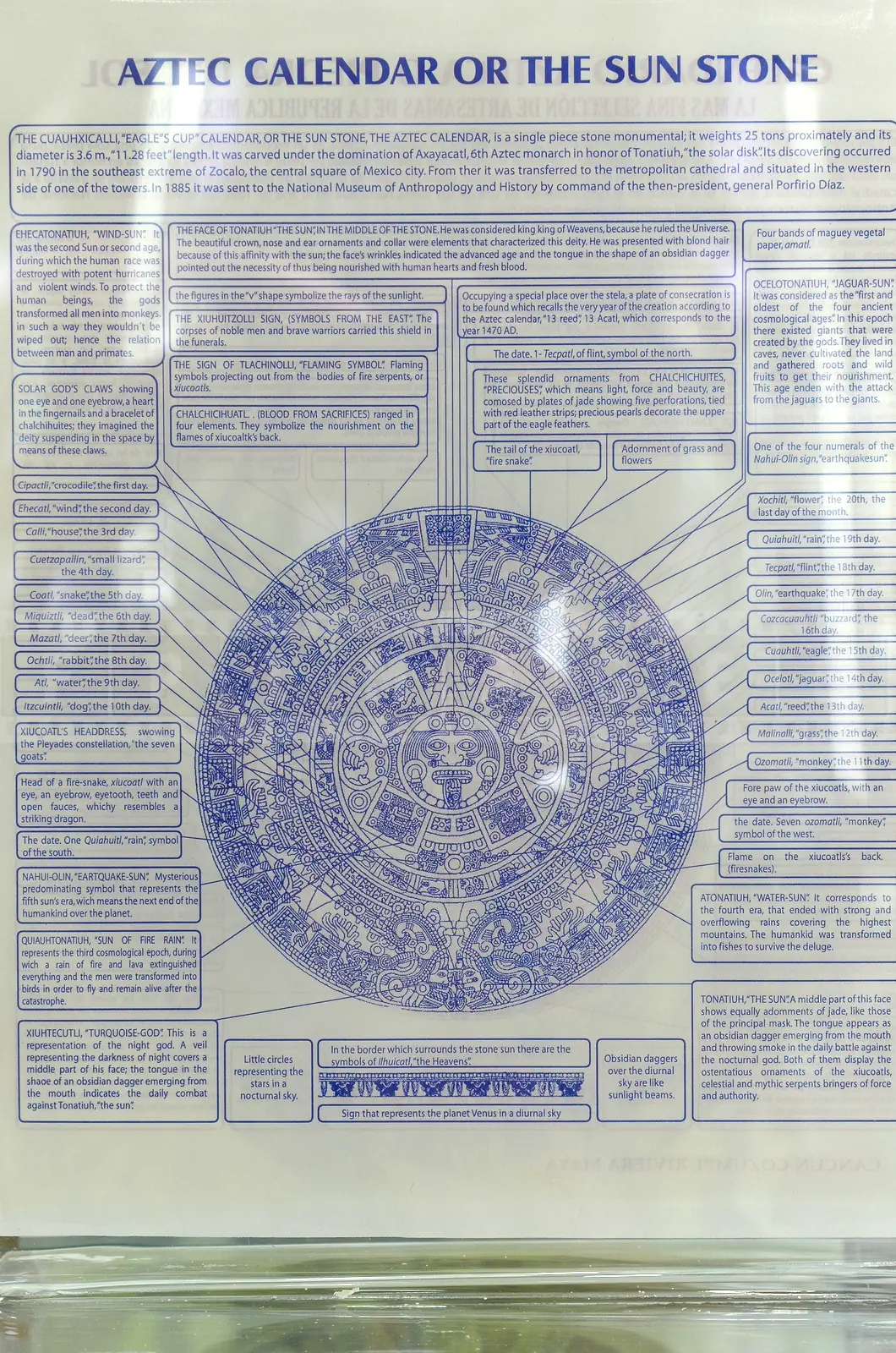 Large cruise ships docking at Puerto Maya Terminal, MexicoCarnival Liberty at the pier in Cozumel, MexicoGift shops with many ideas to bring back home – bags, hats, towels, cigars and liquor, to name a fewHistory and explanations of the Aztec calendar – The Sun Stone, discovered in Mexico CityMayan pyramid-shaped fountain creates a space to relaxThe bright yellow and blue architecture of the shopsNative Aztec art accents at the Purto Maya terminal in MexicoTourists shops are ready for the Christmas seasonXmas tree decor at the shopping plaza in CozumelColorful tables cloths are unique and special gift ideasMetal donkey street decoration near the gift shop