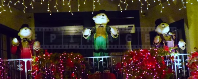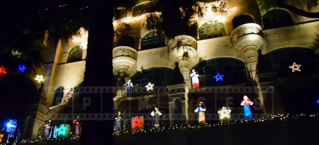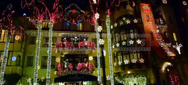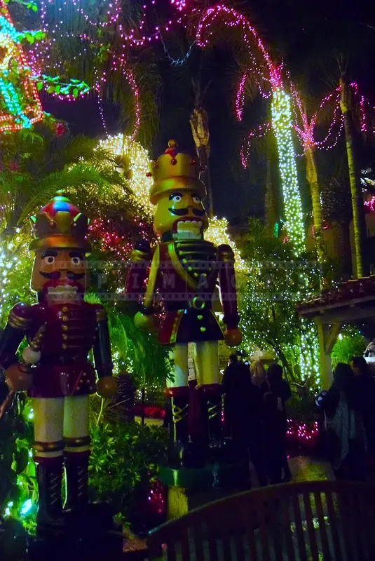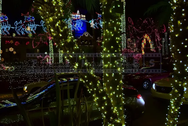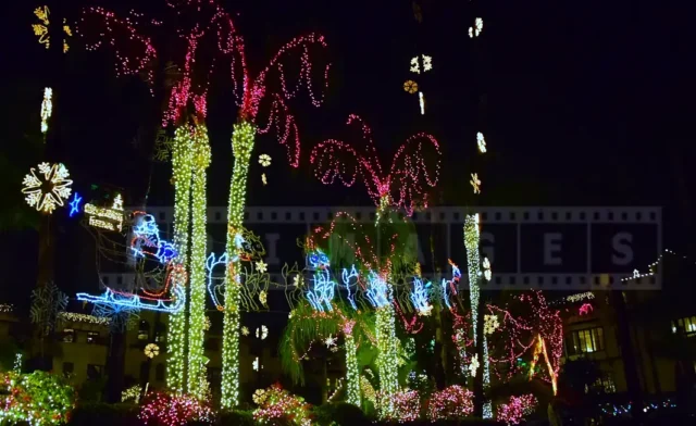 Every palm tree has many lights, the trunk, the crown – everywhere you look; there are Christmas lights. Various Christmas themes are elegantly selected and displayed.