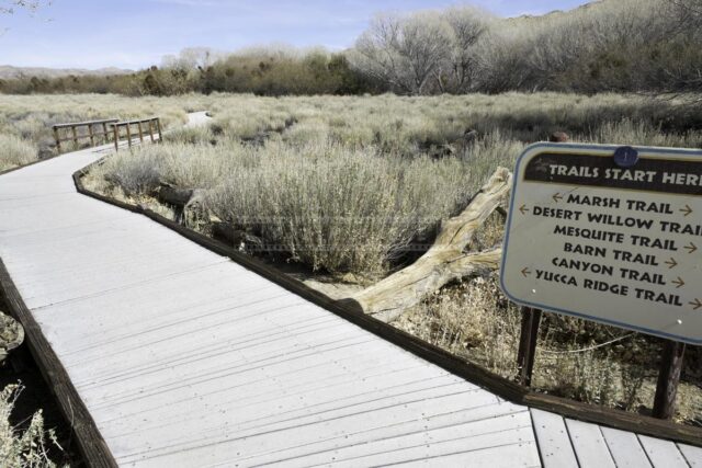 The entrance to Big Morongo Canyon Preserve is just off Highway 62. It is open every day until sunset, the gate opens at 7:30 am. The kiosk near the entrance has a map of the trails and some brochures describing the birds, animal tracks, and plants. The preserve has water, and this is a major draw for all the animals in the surrounding desert. These desert springs make it possible for large trees to grow here. You will find lots of cottonwoods, willows, sycamores, and of course, California fan palms. Bird walks are an excellent opportunity to learn from local guides about the wildlife. They usually happen every Wednesday and Saturday morning. Visit www.bigmorongo.org for more details and information about other events.