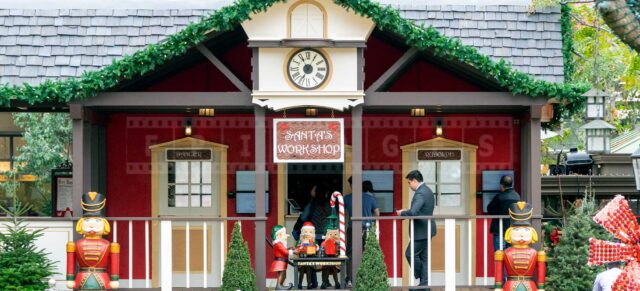 The clock tower and market stands are well decorated for Christmas and create a great holiday atmosphere. Another reason to visit the farmers’ market is the Grove. The Grove is a shopping, dining, and movie theater district. It features a free trolley along its main street, a dancing fountain, and many beautiful outdoor Christmas decorations. These include Santa’s Workshop and a reindeer sleigh flying high above the fountain.