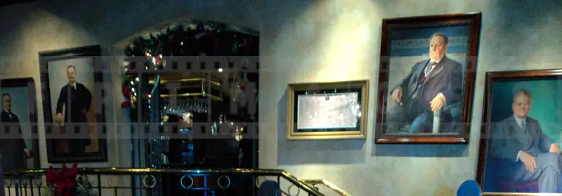 The Mission Inn has a long history, so when you follow the line-up, take your time to explore various displays. Many US presidents stayed at the hotel and their portraits are everywhere on the walls.