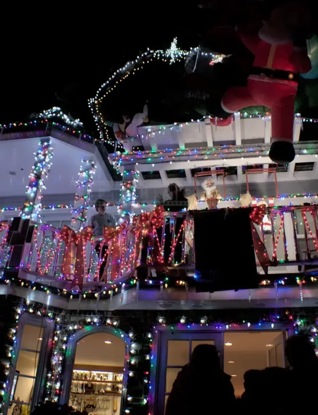 Naples Island has a fantastic waterfront, and Christmas lights make it even more attractive. Christmas decor and music create a unique atmosphere. Various tours are available, but walking around the island is also a pleasure.