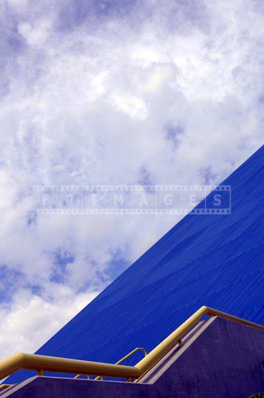 Industrial objects will often produce great abstract images that can be used as abstract art or as nice desktop backgrounds. Walter Pyramid certainly has this industrial feel – clear geometric proportions, corrugated metal construction, concrete foundation and stairs, absence of windows. Colors are amazing too – cobalt blue pyramid walls, yellow railings complement each other well. In architectural photography always experiment with lighting conditions – try to shoot at sunrise and sunset, look for unique angles, patterns, and rhythms.
