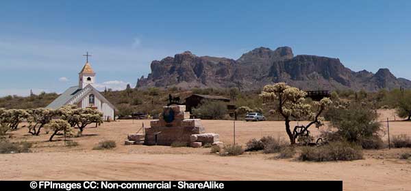 As suggested by the name, there are tales that the mountains hide a legendary gold mine. When planning a road trip consider stopping at Superstition Mountains Museum. Museum tells a history of gold mining in the mountains. There is a chapel that was in many movies about the Wild West. One of the films even starred Elvis Presley, so now they call it Elvis memorial chapel.