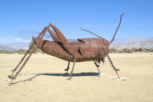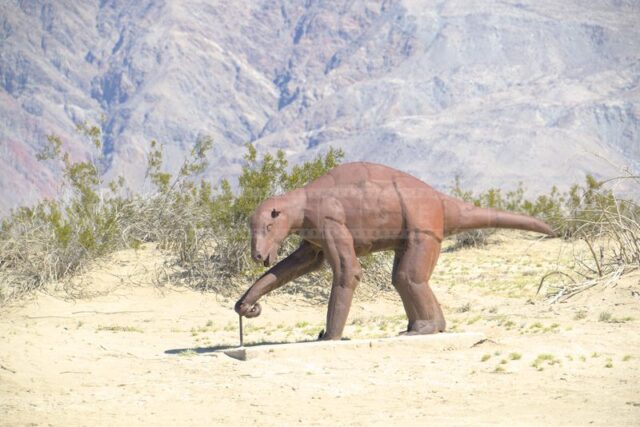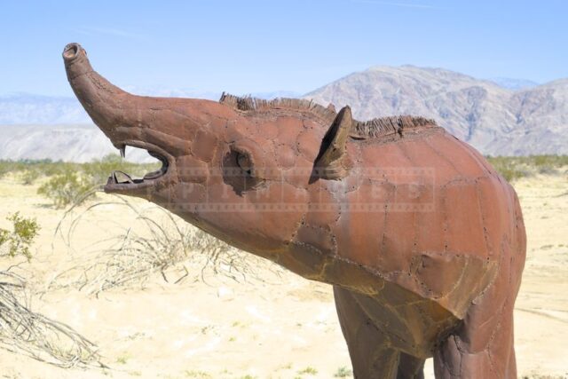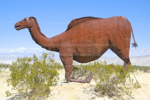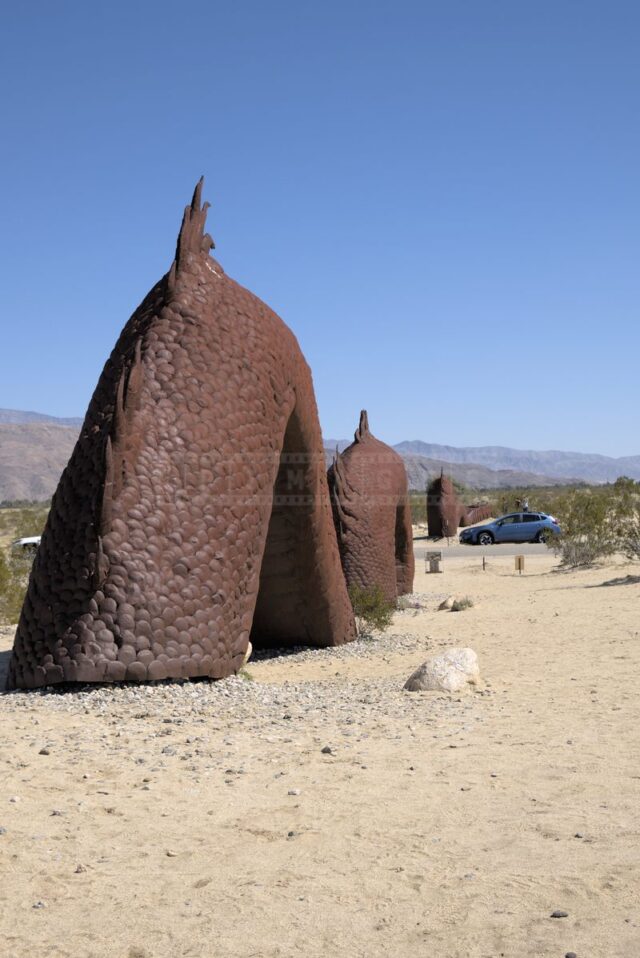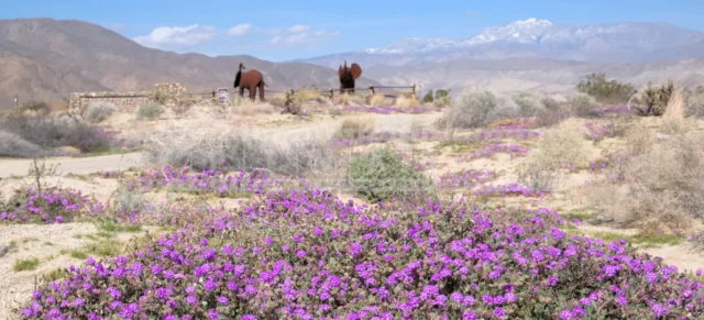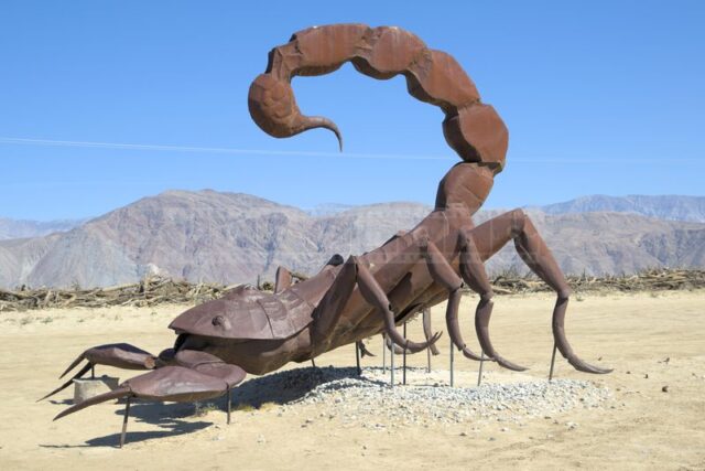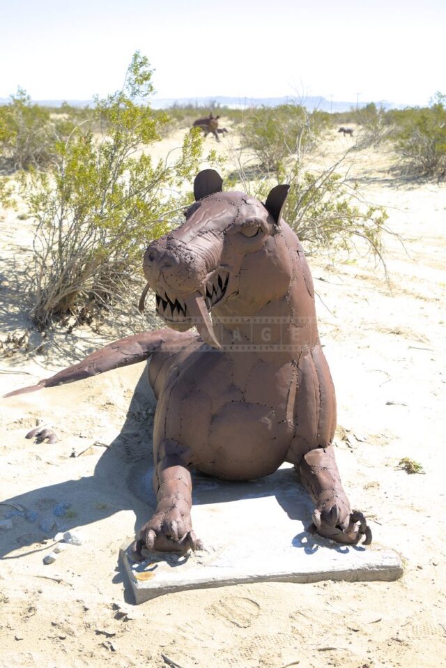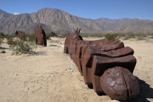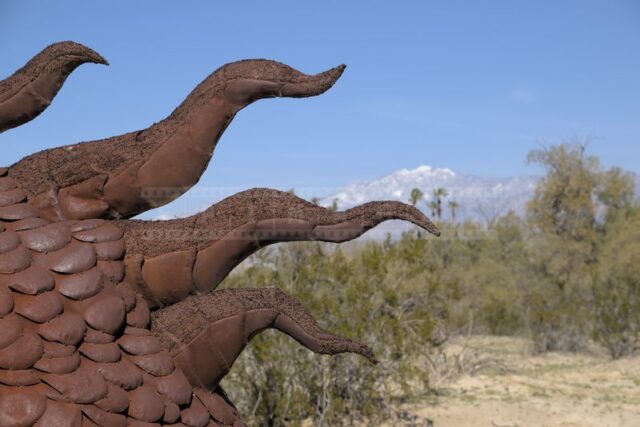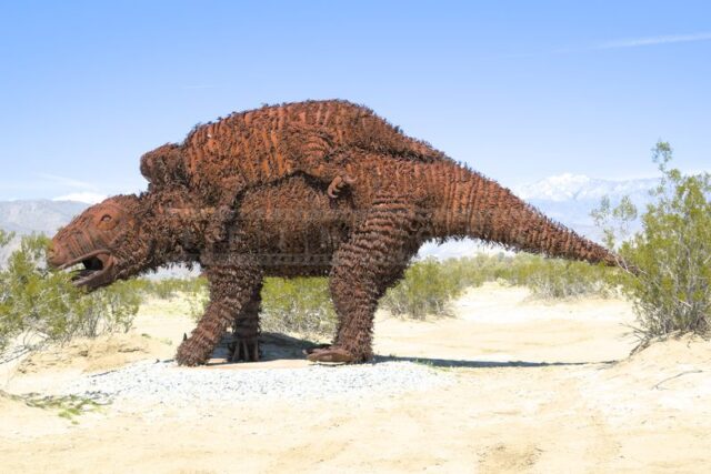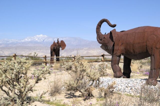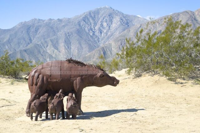 The Anza-Borrego desert, with its vast and serene landscape, is home to a remarkable collection of metal sculptures that create a striking contrast against the backdrop of arid wilderness.