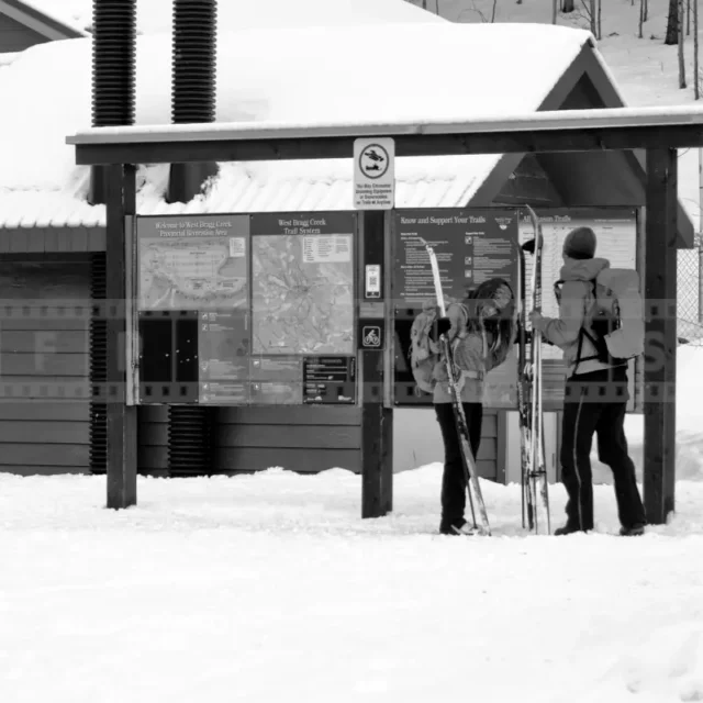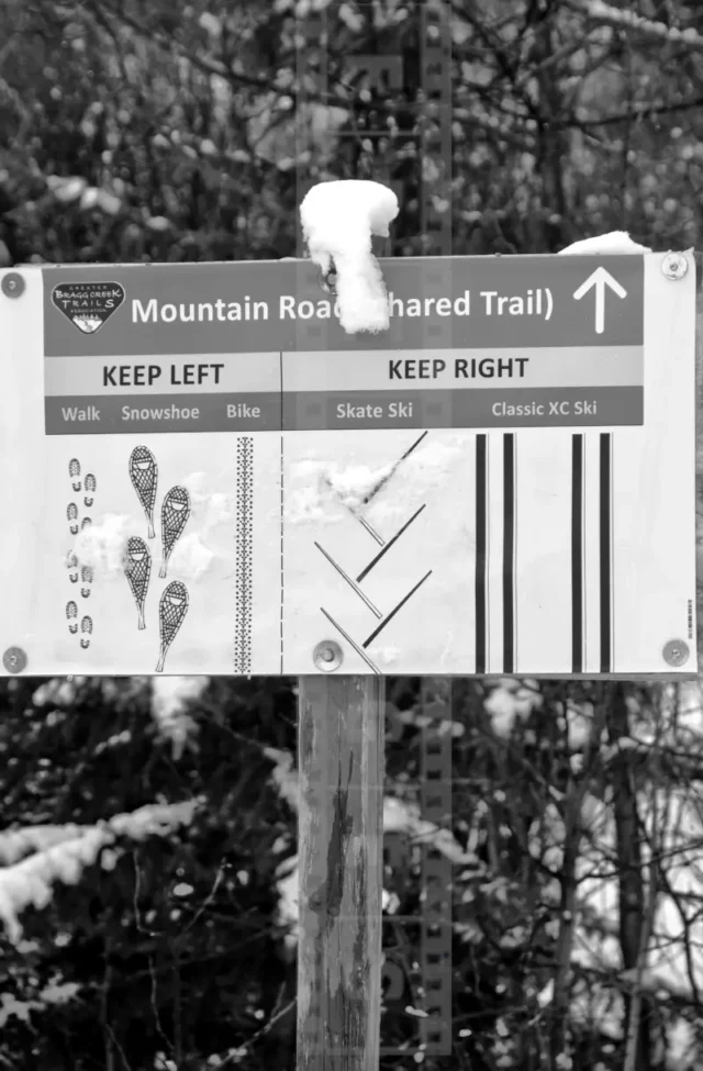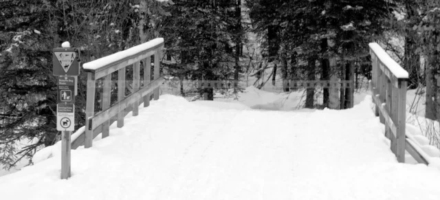 Bragg Creek winter activities include walking, snowshoeing, biking and cross-country skiing.